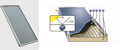 3. Συλλεκτική επιφάνεια από επιλεκτικό χαλκό. Επικαλυμένος χαλκός με μαύρο χρώμιο πάνω σε ειδικό υπόστρωμα νικελίου, κολλημένο στους σωλήνες χαλκού με τεχνολογία υπερήχων (ULTRASONIC).