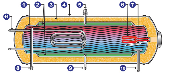 11. Σερπαντίνα από ανοξείδωτο χάλυβα 316L για συμπληρωματική πηγή ενέργειας (π.χ. λέβητας κεντρικής θέρμανσης) (μόνο για μπόιλερ τριπλης ενέργειας – 3Ε).