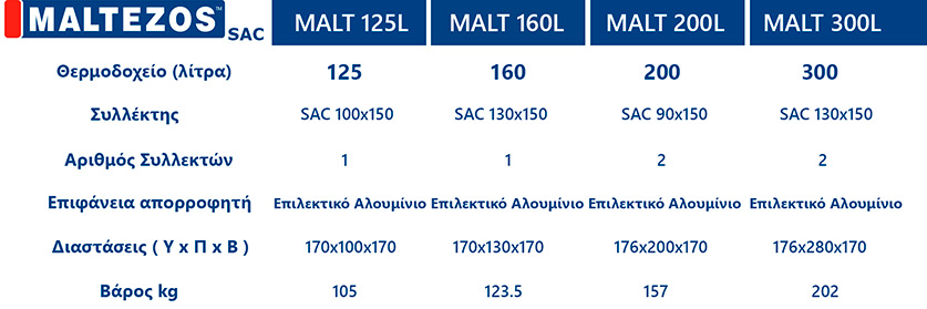 Οι ανοξείδωτοι ηλιακοί θερμοσίφωνες MALTEZOS διατίθενται και με επιλεκτικούς συλλέκτες αλουμινίου SAC